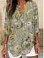 Dame Skjorte Boho skjorte Bluse Trykt mønster Blomstret Grafisk Årgang Daglig Stilfull Langermet V-hals Lange topper Avslappet Daglig Ferie Svart Grønn Beige Sommer Vår