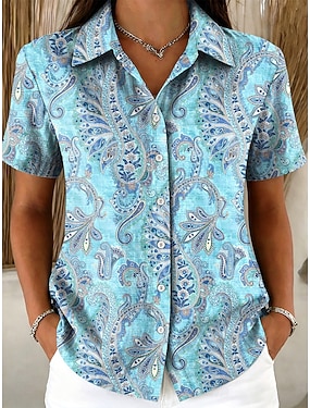 Dame Skjorte Knapper Trykt mønster Grafisk Paisly Årgang Stilfull Moderne Kortermet Skjortekrage Vanlige topper Avslappet Daglig Blå Gul Rosa Marineblå Lilla Sommer Vår