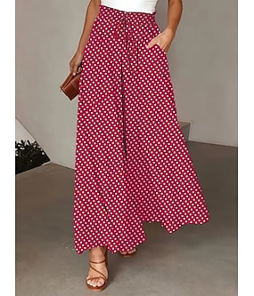 kvinners bukser mote casual maxi bukser med høy midje polkaprikket lommetrykk mikroelastisk gate daglig svart gul rød grå sommer polyester
