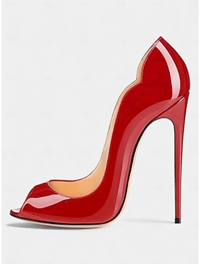 røde stiletthæler i lakkskinn til dame – sandaler med åpen tå og høy hæl for uteliv, fester og klubbantrekk