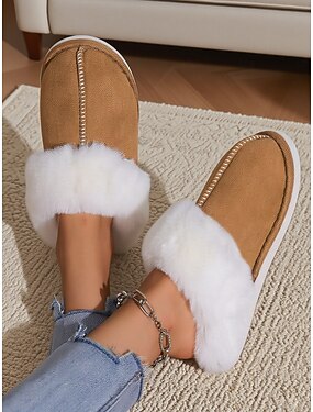 Kameltøfler til dame med pelskant – varme, plysjlignende tresko til soverom, innendørs avslapning og hjemmespa