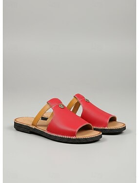 røde slip-on-sandaler for kvinner med utskjært design, komfortabel såle og uformell stil for sommerbruk og daglige utflukter