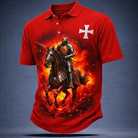 Herre Drage Kors Poloskjorter Kortermet Poloskjorter Knaphul Årgang Fritid Gate treningsklær Dagligdagstøy 3D-utskrift Knapper Pustende netting Sommer Vår Svart Rød Brun