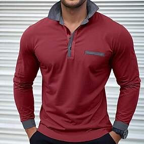 Herre Fargeblokk Polo Med Tekstur Langermet Poloskjorter Knaphul Fritid Skole treningsklær Dagligdagstøy 3D-utskrift Vår Høst Vinter Blå Rød Lilla