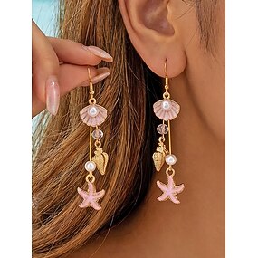 dame-øredobber med sjøstjerneskall og dusk i legering, flerfargede stranddråper til feriereiser, resortstil og hverdagslig fritidsbruk