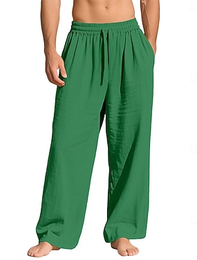 Herre Militærbukser Linbukser Bukser Sommerbukser Posete bukser Lomme Elastisk midje Snorer عادي Komfort Pustende Full lengde Avslappet Daglig Ferie Ferie Mote Svart Grønn Uelastisk