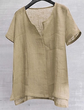 Herre Skjorte Skjorte i bomullslin Hvit bomullsskjorte Uformell skjorte عادي Feriereise Gate Svart Hvit Kongeblå Oransje Kortermet V-hals Sommer Klær