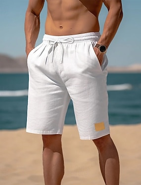 Herre Shorts Lin Shorts Sommershorts Strandshorts Capri-bukser Lomme Snorer Elastisk midje عادي Komfort Pustende utendørs Daglig Ut på byen Mote Gatemote Svart Hvit