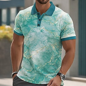 Herre Marmor Poloskjorter Kortermet Poloskjorter Skjorter med krage Fritid treningsklær Dagligdagstøy 3D-utskrift Knapper Sommer Vår Blå Grønn Svart