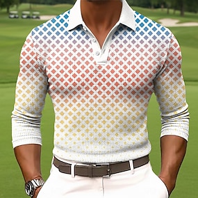 Herre Gradient Ramp Vaffel poloskjorter Langermet Poloskjorter Knaphul Sportsklær Fritid Skole treningsklær Dagligdagstøy 3D-utskrift Vår Høst Vinter Blå Gul Rød