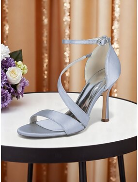 kvinners hvite sateng-tverremmer peep-toe hæler – elegante stiletto-sandaler for bryllup og datekveld