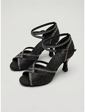 Damesko med brune strass-motiv og latinamerikanske dansesko, hæler med åpen tå og ankelremmer for salsa, tango og ballroom &ytelse