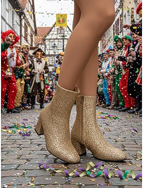 Kvinners Mardi Gras Rosa Glitter Knelange Støvler med Blokkhæler – Funky Dristig motesetning Perfekt karneval festivaler og kostyme fester