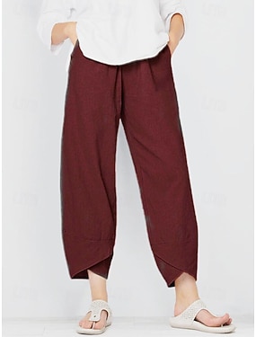 Dame Imitert bomullslin Bukser Sommerbukser Avskårede bukser Gatemote Fritid Ankel-lengde Naturlig عادي Lomme comfy Bekvem Gate Dagligdagstøy Grå Svart Rosa Vin Sommer Normal