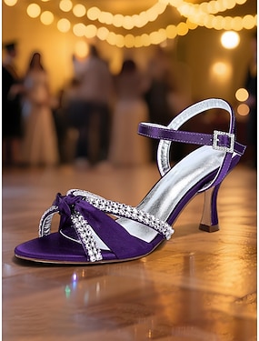 kvinners lilla sateng rhinestone sandaler – elegante knute ball hæler for bryllup og dansekvelder