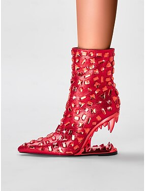 røde ankelstøvletter med pigger for kvinner med unike utskårne hæler – statement høye hæler for motebegivenheter og fester