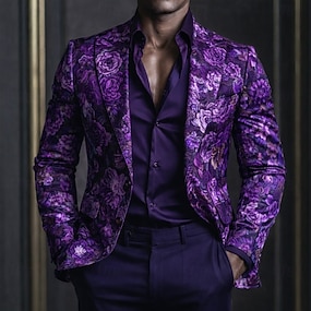 Herre Blomstermønster Blazer jakke Frakk Mote Bekvem Pustende Kunstnerisk Fritid Daglig Fest Formell 3D-utskrift Knapper Multi lomme Vår Høst vinter Med hakk Langermet Blå Lilla Brun
