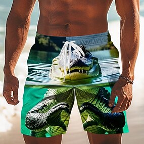 Herre Dyr Krokodillemønster Morsom Badeshorts Surfeshorts Medium Midje Hawaiisk utendørs Feriereise Hverdag Sidelommer Mesh fôr Elastisk snøring i midjen Designer Klær