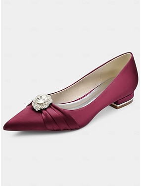 Damesko med spiss tå i sateng og krystallutsmykning – elegante flate sko til bryllupsgjester og kveldsfester