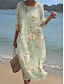 Dame Midikjole Solkjole Uformell kjole Ferie Fritid Strandstil Strand Fest Løstsittende Grafisk Geometrisk Kortermet V-hals Grønn Sommer Vår