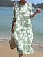 Dame Midikjole Solkjole Kjole med A-linje Ferie Fritid Strandstil Fest Ut på byen Strand Løstsittende Blomstret Grafisk Stamme Kortermet V-hals Blå Grønn Sommer Vår