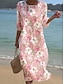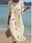 Dame Midikjole Skiftkjole Ferie Fritid Strandstil Strand Normal Blomstret Grafisk 3/4 ermer Crew-hals Hvit Gul Rosa Beige Sommer Vår
