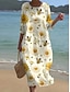 Dame Midikjole Solkjole Uformell kjole Ferie Fritid Strandstil Strand Løstsittende Blomstret Grafisk Kortermet V-hals Blå Gul Rosa Lilla Sommer Vår