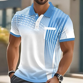 Herre Geometrisk Linje Poloskjorter med glidelås Kortermet Poloskjorter Skjorter med krage Business Casual Virksomhet treningsklær Arbeidsklær Dagligdagstøy 3D-utskrift Sommer Blå Lilla Grønn
