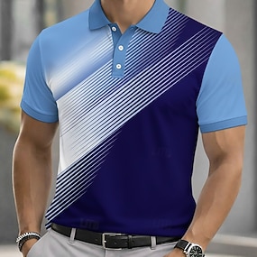 Herre Geometrisk Linje Poloskjorter Kortermet Poloskjorter Skjorter med krage Fritid Virksomhet treningsklær Dagligdagstøy Knapper Sommer Vår Blå Gul Rød
