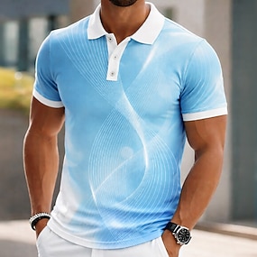Herre Geometrisk Linje Polo Kortermet Poloskjorter Knaphul Business Casual Virksomhet treningsklær 3D-utskrift Knapper Sommer Blå Lilla Gull