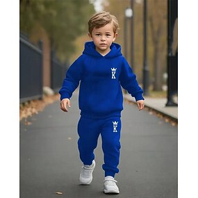 Gutt 3D Grafisk Bokstaver Hettegenser og joggebuksesett Treningsdrakt Treningsdresser Langermet Vår Høst Daglig Grunnleggende Fritid Barn 4-12 år Med hette utendørs Feriereise Sport Skreddersydd