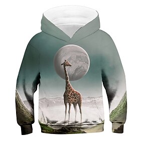 Gutt 3D Dyr Sjiraff Hattetrøje Langermet 3D-utskrift Høst Vinter Aktiv Sport Mote Polyester Barn 3-13 år utendørs Daglig Innendørs Normal