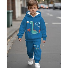 Gutt 3D Dinosaur Hettegenser og joggebuksesett Treningsdrakt Treningsdresser Langermet Vår Høst Daglig Grunnleggende Fritid Barn 4-12 år Med hette utendørs Feriereise Sport Skreddersydd