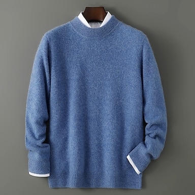 Herregenser i premium kasjmirull med rund hals, klassisk strikket genser, myk, varm, pustende