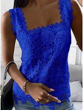 Kvinne Hvit Elegant Blonde Topper Eyelet Bluse Sexy Uten Ermer Blomster Halvgjennomsiktig Fyrkantet Utringning Bølgekant Motetopp Slank Passform Date Avslappet Fest Romantisk Petite Topper Sommer