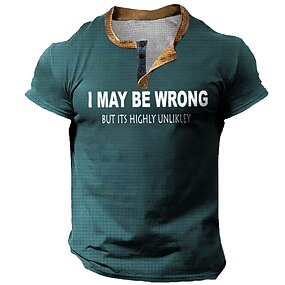 Herre Grafisk Bokstaver T skjorte Henly-skjorte Pappa T-skjorte Kortermet 3D-utskrift Retro / vintage Fritid Sport & Utendørs Daglig Ferie Vår sommer Svart Blå Grønn Henley Henley T-skjorte