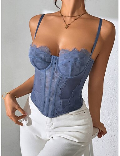 Dame Korsett Shapewear Midje Cincher Midjebelte Formet Bekledning Åpen ryggNightwearPOLY Stevnemøte Klubb Festival Ensfarget Sexy korsett Sexy Svart Rosa Blå Sommer