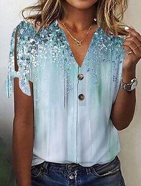 Dame T skjorte Utskjæring Knapper Trykt mønster Grafisk Grunnleggende Kortermet V-hals Vanlige topper Daglig Helg Blå Rosa Grønn Kakifarget Grå