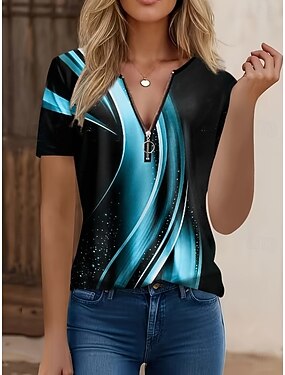 Dame T skjorte Fargeblokk Quarter Zip Grafisk Geometrisk Abstrakt Tropisk Hawaiisk Stilfull Kortermet Crew-hals Vanlige topper Strandbryllup Daglig Sport Blå Rød Lilla Kakifarget Grå Sommer Vår