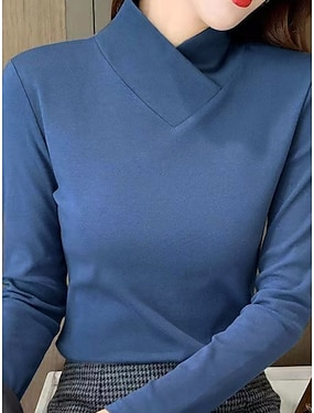 Dame Bluse Helfarge Elegant Stilfull Grunnleggende Langermet Rullekrage Vanlige topper Daglig Blå Svart Hvit Brun Vår Høst Vinter