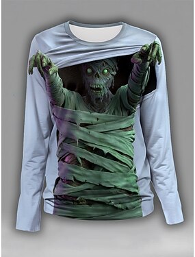 Dame T-skjorte Grafikk Hodeskalle Vintage Mote Stilig Langermet Rund hals V-hals Vanlige topper Daglig Helgetrykk Gul Blå Lilla Grønn Sommer Vår Høst