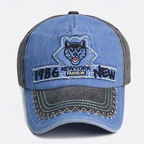 Herre Baseballcaps Solhatt Trucker Hat Svart Blå 100% bomull Broderi Mote Fritid Daglig Helg Ulv Bokstaver Justerbare Solkrem Pustende
