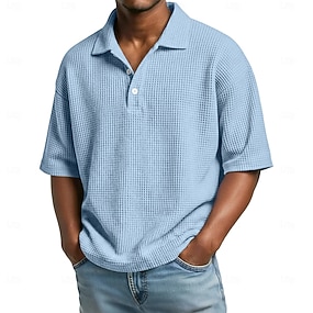 Herre Vaffel poloskjorter Med Tekstur Avslappet Virksomhet Aftæpning Kortermet Mote Grunnleggende Helfarge Knapper Ren Vår sommer Blå Dyp Grønn Hvit Rød Navyblå Lilla Vaffel poloskjorter
