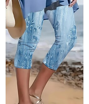 Dame Leggings Capri Bukser Høy Elastisitet Motemote Full Lengde Høy Midje Blomstertrykk Termisk Varm Pustende Myk Utendørs Hverdags Linlignende Mørk Grå Kombinasjon Sommer Vår Normal Passform