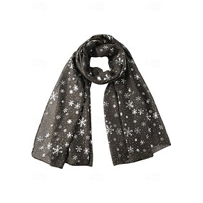 Julesnøfnuggskjerf til dame, festlig rødt og hvitt design med metalliske snøflak, mykt polyestermateriale, perfekt for høytidsfester og vinterklær