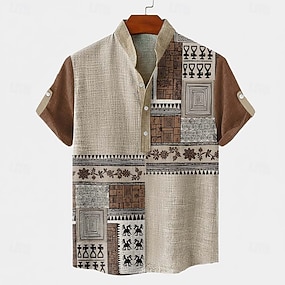 Herre linskjorte Henly-skjorte retro skjorter Vintage skjorte Etnisk skjorte Etnisk Feriereise Daglig Grønn Kakifarget Beige Kortermet Kinesisk Krave Sommer Vår Klær Trykt mønster