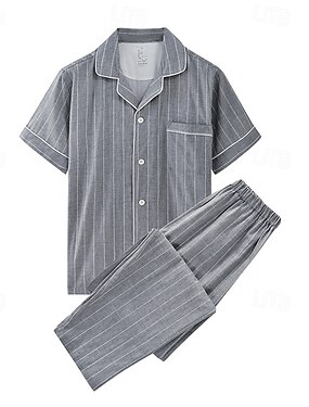 Herre Nattøy Pyjamas Sett Pyjamas topp og bukse 1set Stripe Mote Stilfull Klassisk Hjem Daglig Seng Bomull Komfort Myk Pustende Knaphul Kortermet Skjorte Bukse Elastisk midje Knapper Sommer Vår