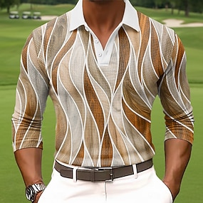 Herre Geometrisk Polo Langermet Poloskjorter Skjorter med krage Business Casual Virksomhet treningsklær Dagligdagstøy Knapper 3D-utskrift Vår Høst Vinter Hvit Blå Brun