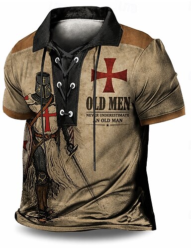 Herre Gammel mann Poloskjorter Kortermet Poloskjorter Knaphul Årgang Fritid Gateklær Dagligdagstøy 3D-utskrift Pustende netting Vår sommer Svart Brun Grå