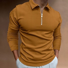 Herre Horisontale strips Poloskjorter med glidelås Langermet Poloskjorter bestefars krage Fritid Skole treningsklær Ferie Dagligdagstøy 3D-utskrift Kvart zip-polo Vår Høst Blå Brun Grønn